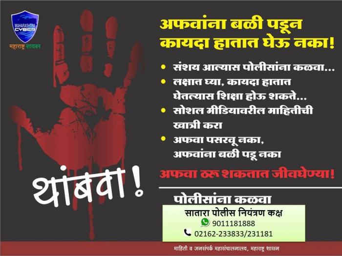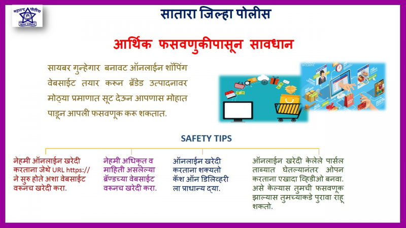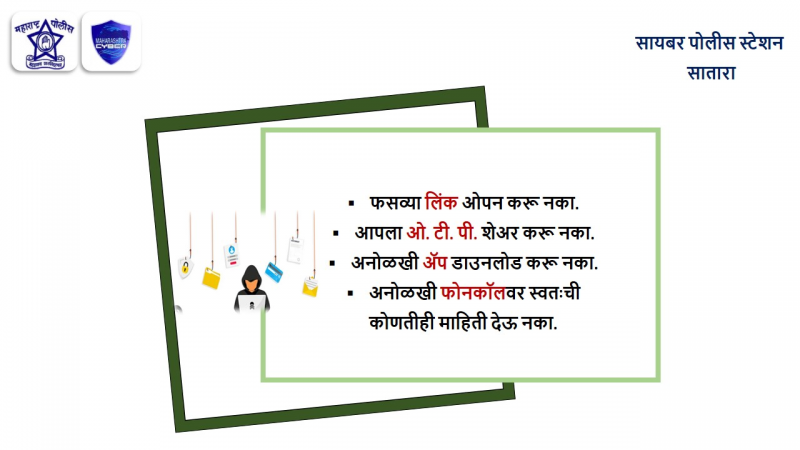 आर्थिक गुन्हे शाखा, सातारा जिल्ह्यातील नागरिकांना जाहीर आवाहन करतो की, शहरी आणि ग्रामीण भागात शेअर बाजार, क्रिप्टो करन्सी, मनी लाँडरिंग आणि फसव्या योजनांच्या आमिषाने मोठ्या प्रमाणात आर्थिक फसवणूक वाढत आहे.